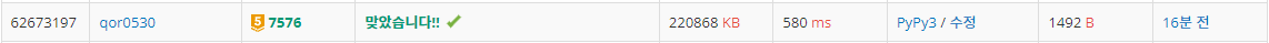 | [Python] 32775 - 가희와 4시간의 벽 1 (2) | 2025.08.25 |